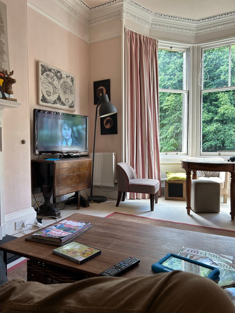We feel so lucky to have such a large home base and not be confined to a hotel. The boys are sharing a room with two beds and they are loving it. Chad is using a room for his office and our Master overlooks the park and has lots of old charm. Most importantly there is a washer and dryer. π the sitting room is my favorite part. The high ceilings, fireplace, huge windows and crown molding make it such a cozy spot! I have learned I can live without a microwave and flavored creamer. π€£