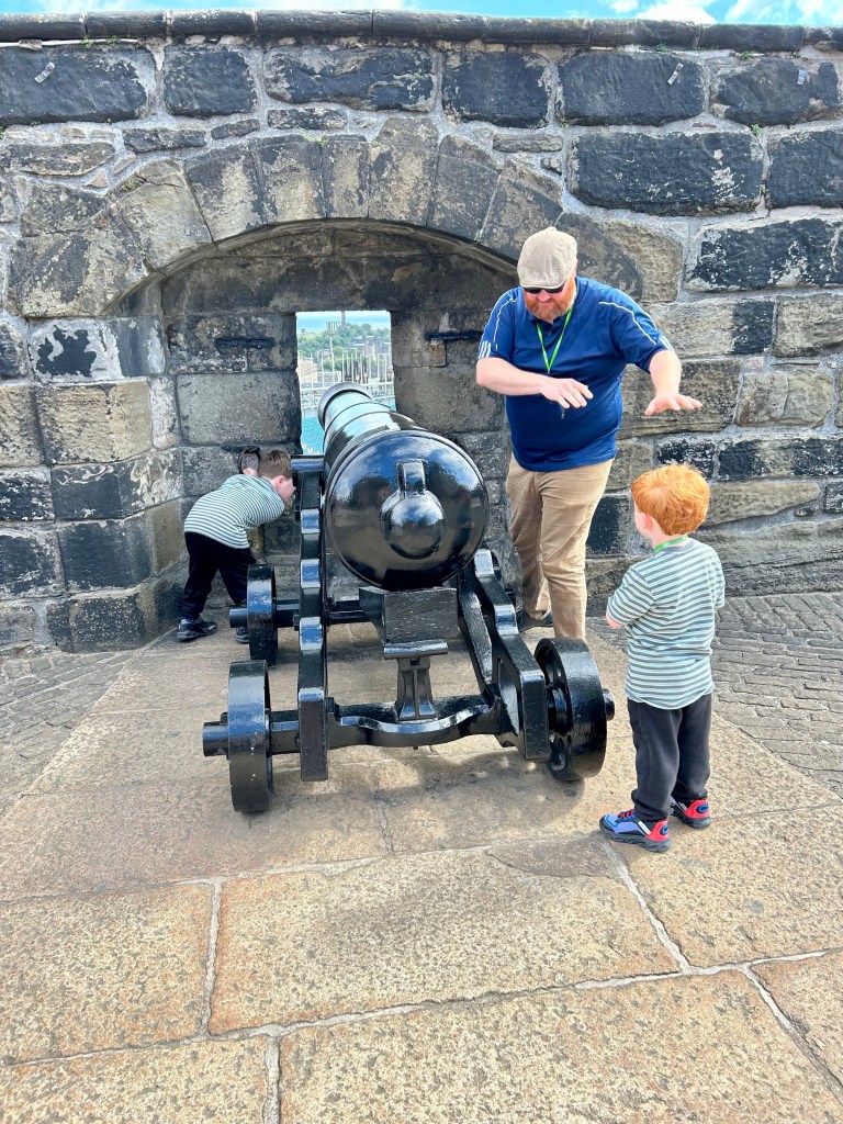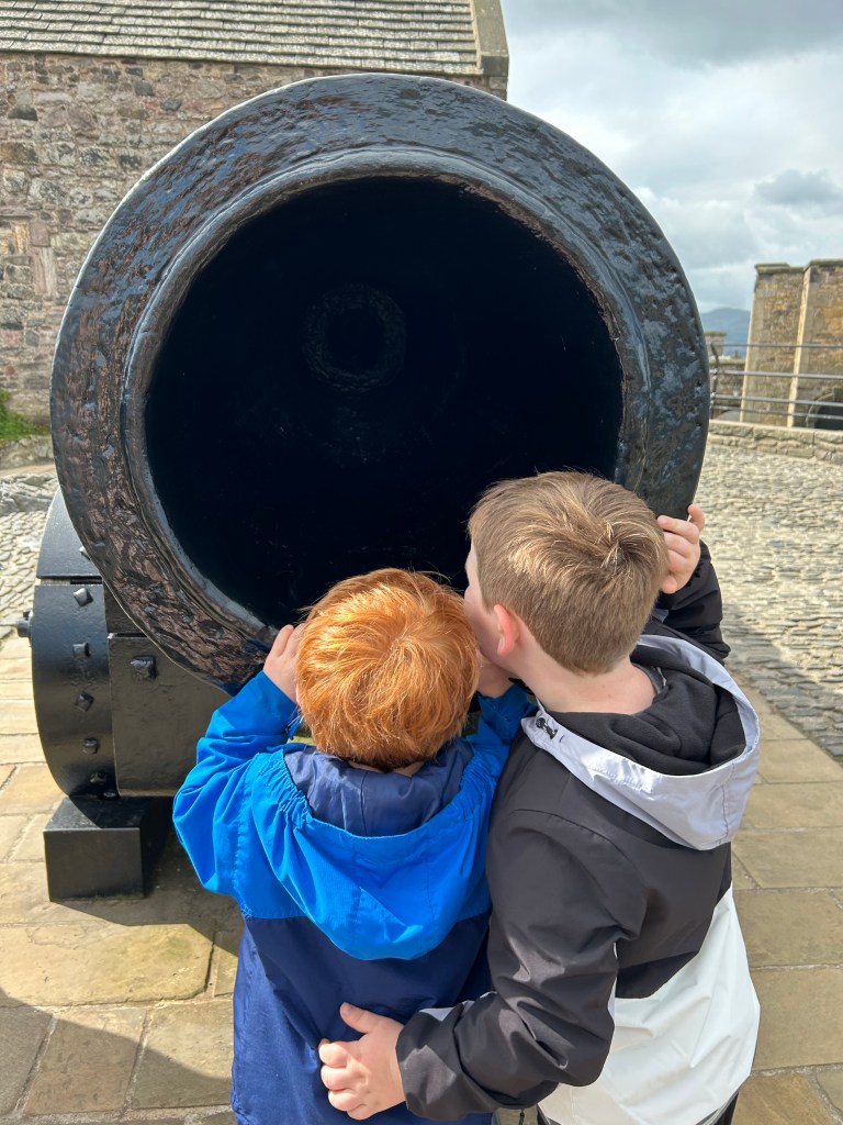 Last Sunday we had the first tour of the day for Edinburgh Castle and I am so glad we did. As we were leaving a few hours later the grounds were absolutely PACKED and it was pouring. We weβre lucky in that we made it through most of our tour with no rain and sun. The Castle was so fun and surprisingly the boys did pretty good following along to site to site so Chad and I could read along the way. We definitely didnβt get to read and listen to everything but we saw a lot. The views from the Castle are just breathtaking and the boys loved looking at every Canon. π€£
