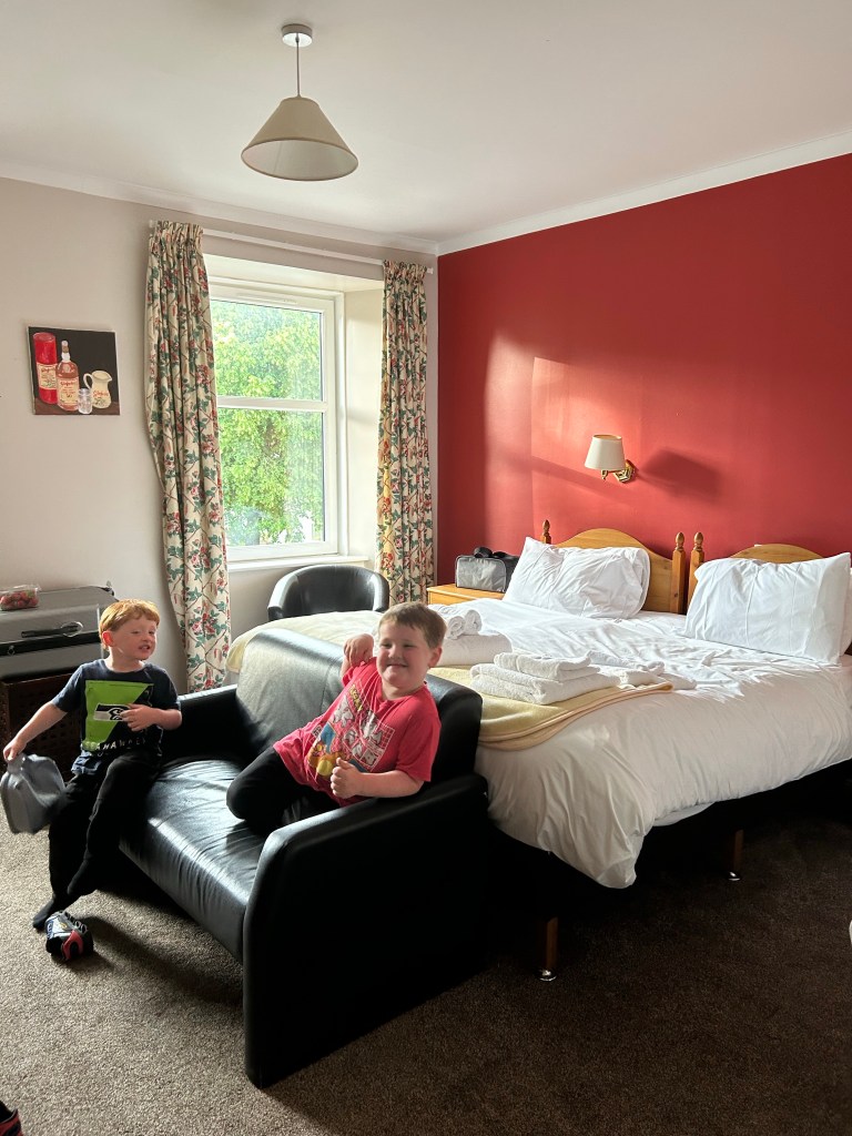 Our first night on a road trip we had a little hitch. I had booked a Hostel months ago up in the mountains in the Highlands Tomintoul. During the day prior to our check-in, I tried calling and emailing and no response. We got to the city very late with some tired kids and there was not a person in sight to check us in. After waiting for about 45 minutes we finally gave up and decided to look for another hotel in the town. The problem was there’s only about three hotels in this little town and it was their second busiest weekend of the year that weekend they were hosting the largest biker rally in the area so I took the kids to a Park to get some wiggles out Chad went next-door to a hotel and thankfully they had a last-minute cancellation and the owner was so generous and got us a room for the night.