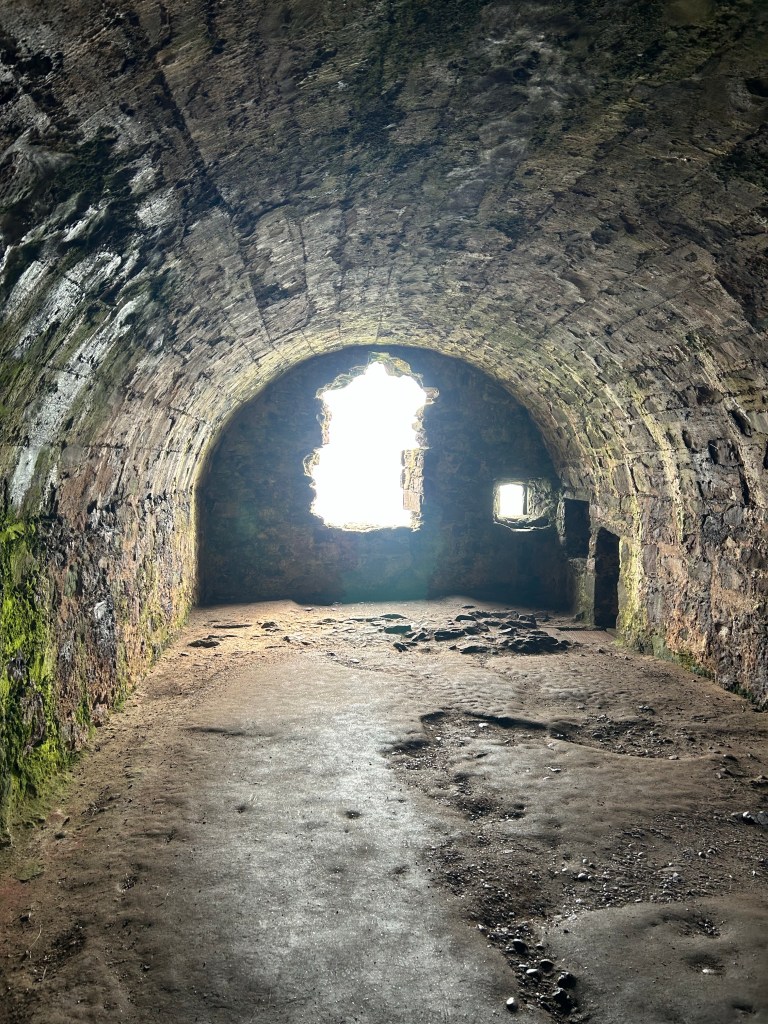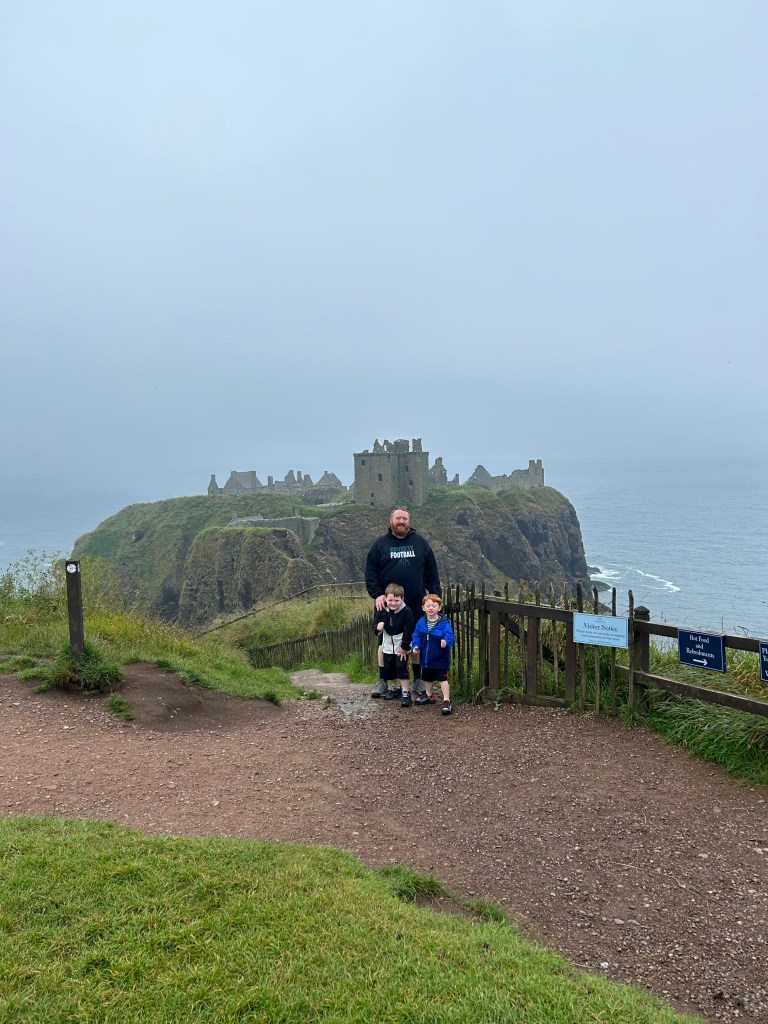 Our first stop was Blackness Castle just 20 minutes outside of Edinburg and it was definitely a sight for the eyes. You drove up to it on this one lane road and it’s sits all alone surrounded by water. I did a lot of research on Castle Visits and they all recommended always being the first there or get the first tickets of the day. I am so glad we did because when we got to Blackness Castle it was completely dead and the first 30 minutes felt like we had the place to ourselves. That day they had a Volunteer dressed up in Character as a Scottish Rein-actor from Outlander. Apparently later that day a bunch of “Outlander Tour Buses” were coming through. The gentleman was so kind and patient with the boys. The boys were so excited to hold a sword! This castle definitely had some spots that made me hold my breath while the boys were walking along some very questionable waking paths along a very narrow path with a pretty steep drop off 😬. My mama heart was a bit pumping on parts of this Castle Tour.